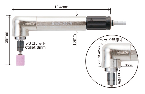 Kích thước đầu kẹp (Collet): 3.0 mm.